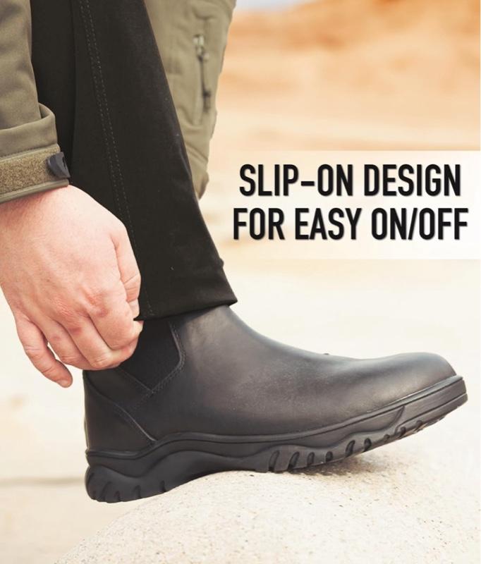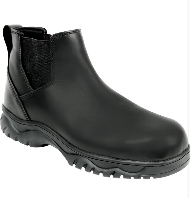 - Start your day right with a step forward in our Chelsea Work Boots. Designed with full grain waterproof leather uppers, these slip on work boots keep your feet dry from the elements, while offering all-day comfort that stays with you. Slip-On Convenience: The reinforced pull tabs and elastic side panels make it easy to either pull the Chelsea boots on or take them off. Secure Footing: The work boots feature a slip and oil resistant rubber sole for improved grip and traction that prevents slips or falls. Lightweight & Comfortable: Featuring wear resistant mesh lining and removable EVA foam insoles, these breathable work boots provide long-lasting comfort and cushioning. The composite shank offers additional support and stability while remaining lightweight for quick and easy mobility. Getting the Job Done: From mechanic shops to warehouses, the slip resistant boots are great for engineers, tradesmen, industry workers, carpenters, or anyone that turns a wrench. Staying on Your Toes: Designed with precision and built to withstand the harshest conditions, Rothco's collection of footwear and accessories combines durability, functionality, and unparalleled performance. From our Forced Entry Series which features our speedlace and waterproof technologies, to our V-Max Collection designed with lightweight running shoe soles, our diverse range of footwear provides unmatched comfort and protection for everyone from active-duty personnel to outdoor enthusiasts. With a rich heritage spanning over 7 decades, Rothco is the go-to brand for all things that keep you standing on your feet.