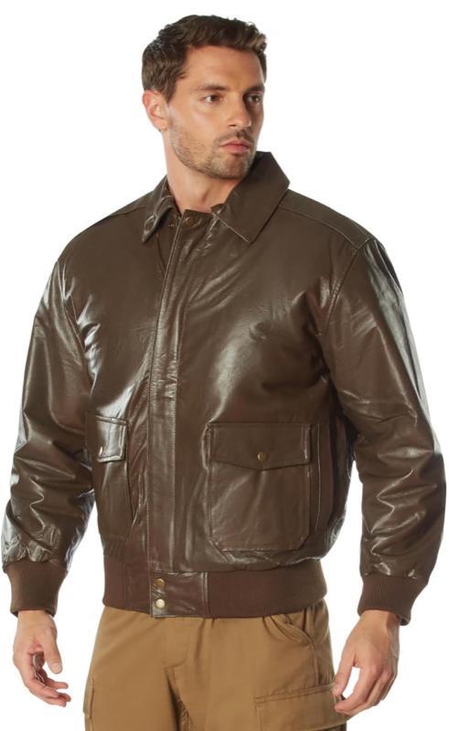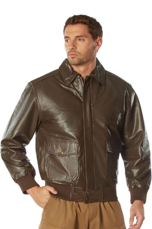 - Step into timeless aviation style with Rothco's Classic A-2 Leather Flight Jacket. Crafted from premium genuine Nappa leather, it exudes the vintage look and feel of a pilot's favorite. The jacket features a breathable zip-out polyester liner, ensuring comfort in any weather condition. With 2 front patch pockets adorned with flap and snap closures, along with convenient slash pockets behind them, you'll have ample storage space for your essentials.