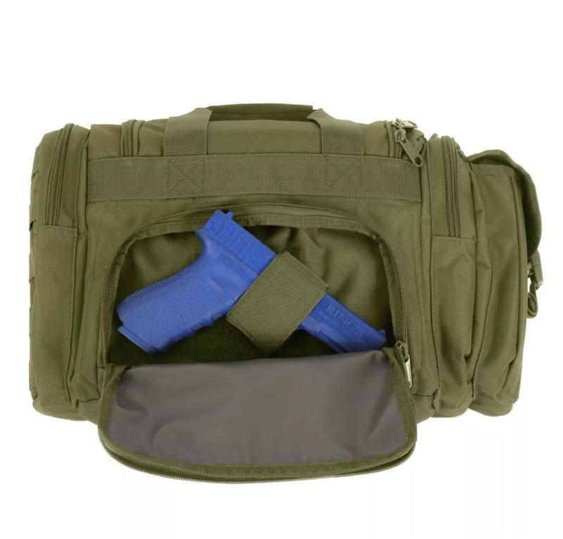 - Rothco's Concealed Carry Bag is a covert tactical essential for the range. With a discreet carry pocket and rear zippered compartment for items, it ensures secure storage. The main compartment features a U-shaped dual zippered flap for quick access, while side zippered pouches with MOLLE attachments offer additional storage options. Equipped with adjustable/removable shoulder straps and top carry handles for versatility. Constructed from heavyweight polyester with D-rings and MOLLE webbing for added functionality. This range bag measures 12 inch x 7 inch x 10 inch, providing ample space for all your shooting essentials.