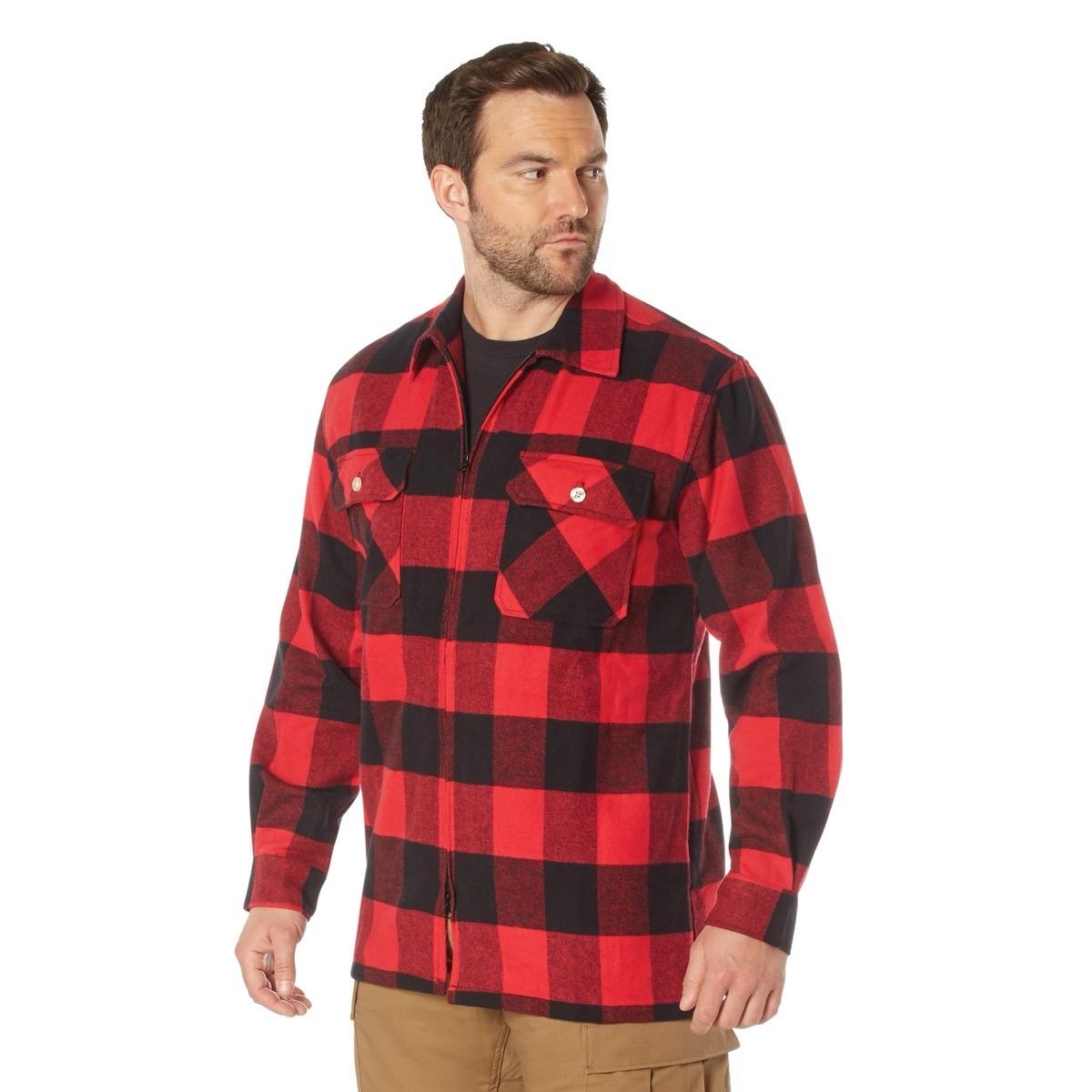 upgrade - Rothco's Tactical Flannel Shirt. This plaid flannel shirt is designed with convenience and practicality in mind, featuring concealed pockets for discreet storage. Made from 100% heavyweight 8 ounces cotton, it offers unmatched durability and comfort. The shirt includes 2 interior pouches and 1 large concealed pocket, perfect for securely carrying essential items. Additionally, the 2 breast pockets with button closures provide extra storage for your gear. The front dual zipper closure ensures easy on/off access and quick reach to the concealed pockets. This versatile shirt is ideal for those who require functionality and style in their everyday wear.