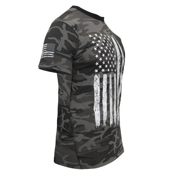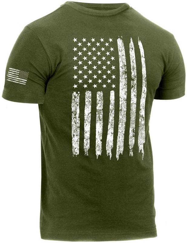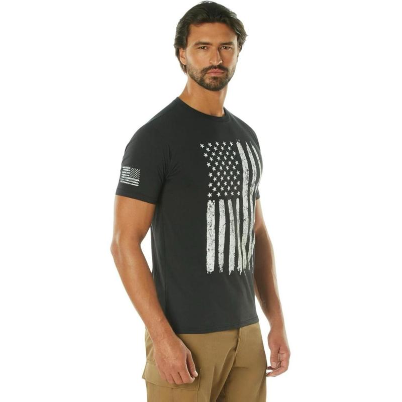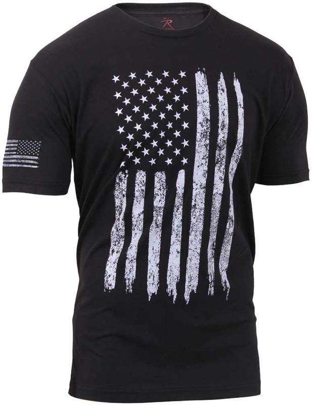 - Show your American spirit with Rothco's Distressed US Flag Athletic Fit T-Shirt. Featuring a large distressed flag on the chest and a smaller one on the right sleeve, it represents American spirit in motion. Designed for athletes, the shirt offers an optimal fit with an inset collar, wide chest, and athletic-fitted sleeves. Crafted from a soft, durable, and breathable cotton blend, it withstands countless workouts. Sizing information is conveniently printed inside for tag-free comfort. Embrace style, comfort, and American spirit with Rothco's Distressed US Flag Athletic Fit T-Shirt.