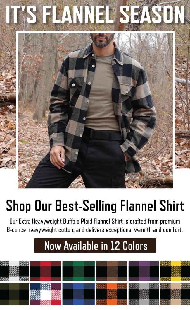 - Our Buffalo Plaid Flannel Shirts provide a layer of unbeatable warmth and comfort, no matter the location. These rugged button-down shirts are great for either wearing on its own or layering as a jacket. They’re made from 8-ounce heavyweight cotton fabric, and are perfect for a casual night out or a brisk stroll through the woods, park, or trail. Warmth and Comfort in a Classic Design: While sporting two functional front button flap pockets with button closures, our heavyweight 8-ounce fabric shirts feature a six-button closure down the center chest, and a button on each wrist cuff for comfortable all-day (and all-night) wear. Furthermore, both pockets are convenient for holding small, miscellaneous items. Tough and Durable Material: Who said you can’t do outdoor work in style? Our shirts are made of 100% cotton heavyweight flannel that will surely keep you warm. From a lengthy snow shoveling session, to a breezy afternoon of fall cleanup, they’ll stand the test of time and weather. The Outdoorsman’s Wardrobe: When it comes to the classic red and black plaid flannel, people usually think of a lumberjack. While we do offer this iconic pattern, our flannel shirts also come in a variety of colors. They make for a practical and robust gift to give to an outdoor-loving enthusiast, especially during the cold months. Washing Instructions: Machine wash cold with like colors. Non-Chlorine Bleach when need. Do not tumble dry. Warm iron if needed
