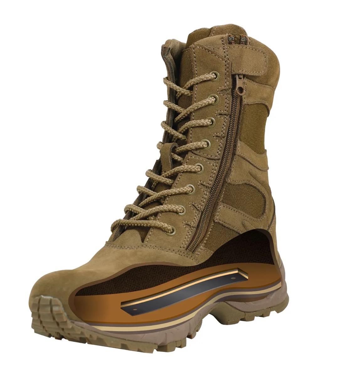 - •Experience unmatched comfort and efficiency with Rothco's Forced Entry 8-inch Deployment Boots. These boots combine the comfort of a running shoe with the durability of an active-duty boot. The mountaineer rubber outsole enhances traction for smooth movement. Save time with the side zipper closure and hook-and-loop tab, eliminating the need to tie and untie laces. The rustproof eyelet lace system keeps your tactical boots securely in place.