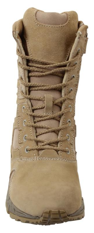 - Experience unmatched comfort and efficiency with Rothco's Forced Entry 8-inch Deployment Boots. These boots combine the comfort of a running shoe with the durability of an active-duty boot. The mountaineer rubber outsole enhances traction for smooth movement. Save time with the side zipper closure and hook-and-loop tab, eliminating the need to tie and untie laces. The rustproof eyelet lace system keeps your tactical boots securely in place.