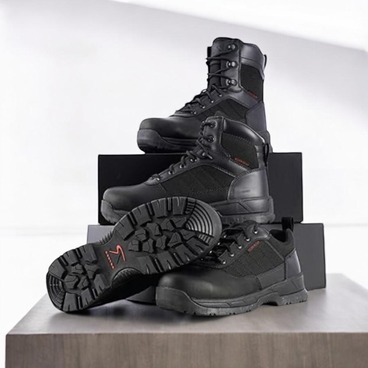 - •Comfort Lock Fatigue Defense System: The Molded EVA Footbed And EVA Midsole Help Absorb Shock, Cushioning Your Feet From Impact While Providing All-Day Comfort. These Breathable Tactical Boots Feature A Lightweight Flexible Cement Construction And A Nylon Shank For Added Support And Stability.