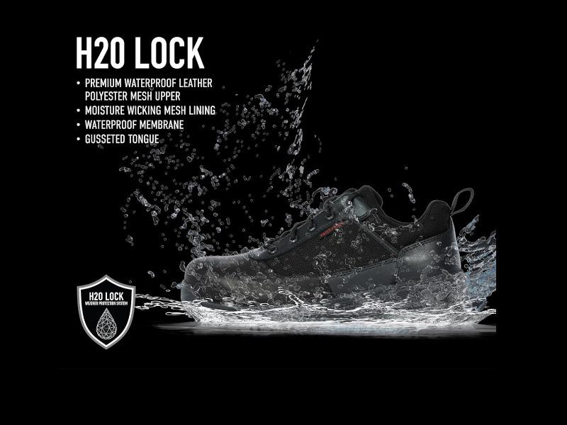 - H2O Lock Weather Protection System: Featuring Premium Waterproof Leather And Polyester Upper, These Tactical Shoes Ensure Your Feet Stay Dry, No Matter The Environment. The Composite Toe Shoe Utilizes A Waterproof Internal Lining For Added Protection, With A Moisture Wicking Mesh Liner Underneath For Breathability While Keeping Water Out.