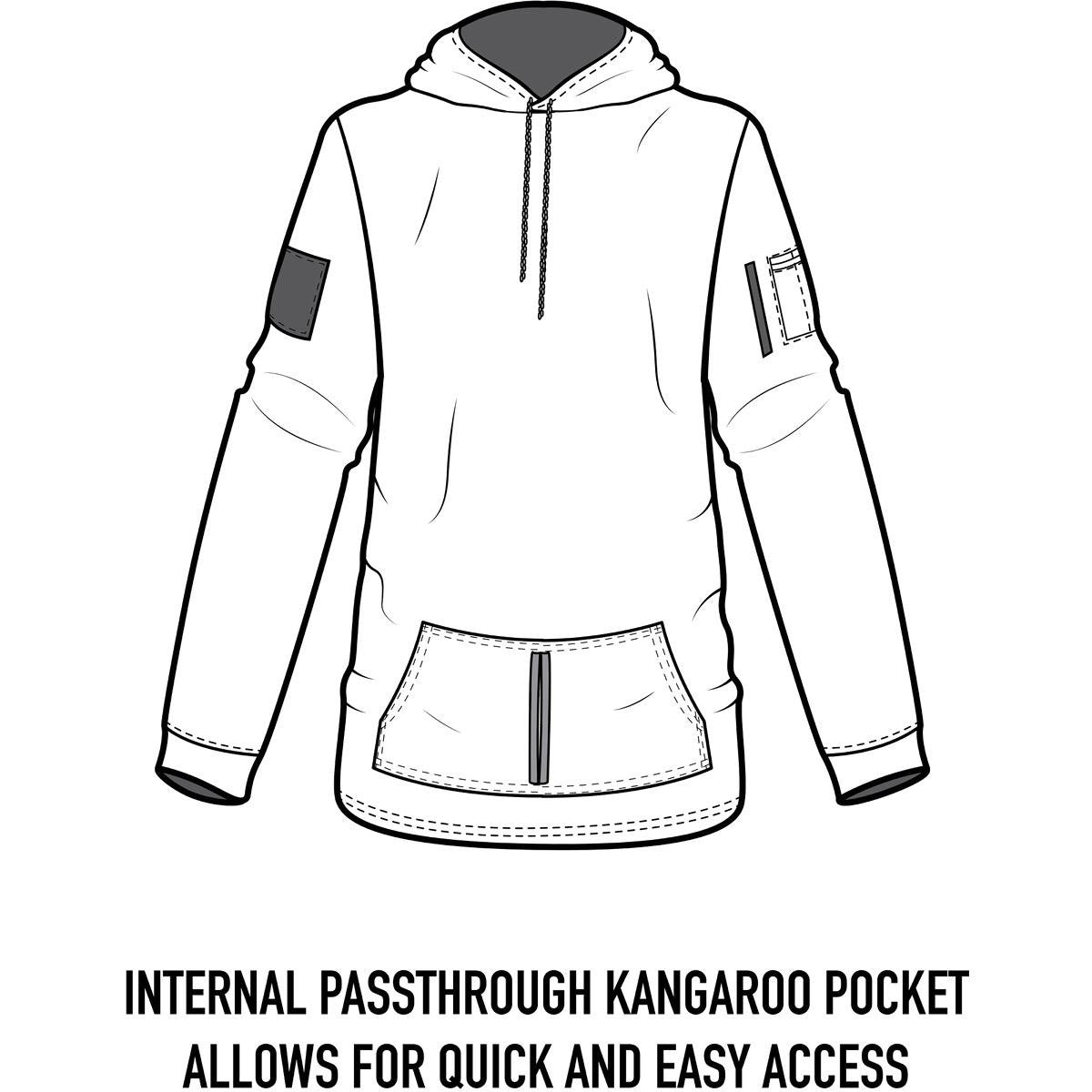 - Secure Storage: The Pullover Hoodie Features Two Zippered Sleeve Pockets With Wire Passthrough Ports, Allowing You To Safely Tuck Away Your EDC Items. The Right Sleeve Includes A Dual Pen Pocket While The Left Sleeve Features A Loop Panel.