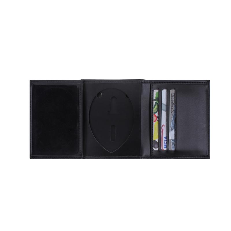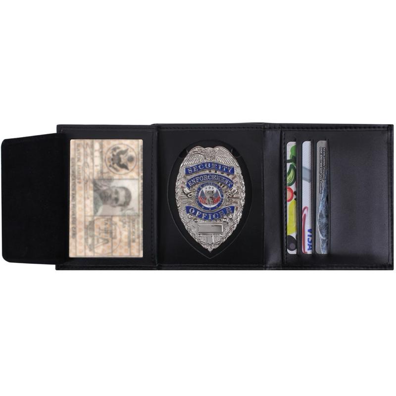 - Rothco's Leather ID & Badge Wallet is meticulously crafted to meet the needs of police and public safety professionals, providing a secure and organized place to store your essential items. This leather trifold wallet features a dedicated section for your badge, cards, and ID window, ensuring easy access and visibility. The removable badge tab includes protective padding to safeguard your badge from damage. With 7 card slots and a cash slot, this wallet offers ample storage for your everyday essentials. Please note, badge is not included.