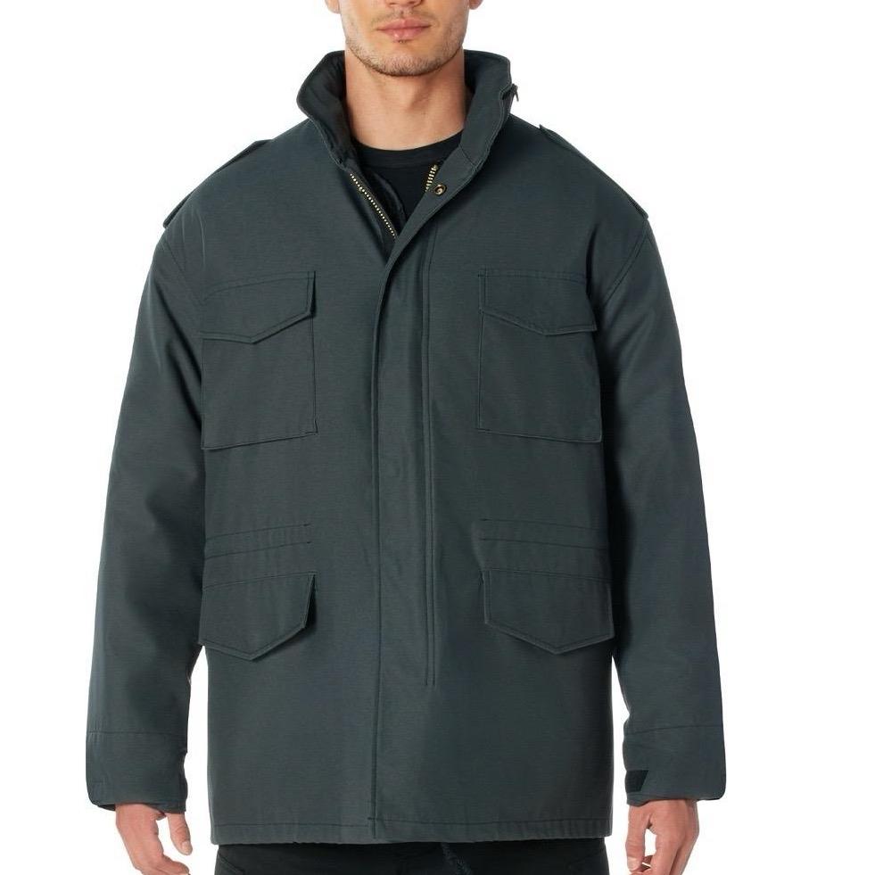 - The Rothco M-65 Field Jacket is a tried-and-true classic designed to conquer the cold weather. The outer shell of the jacket is made of tough, water repellent material that provides superior protection from wind, rain, snow, and sleet. The jacket is designed to the top specifications and features a concealable drawstring hood stored in the collar and secured with a brass zipper closure. The hood can be easily hidden when not in use, making it a practical and functional design feature.