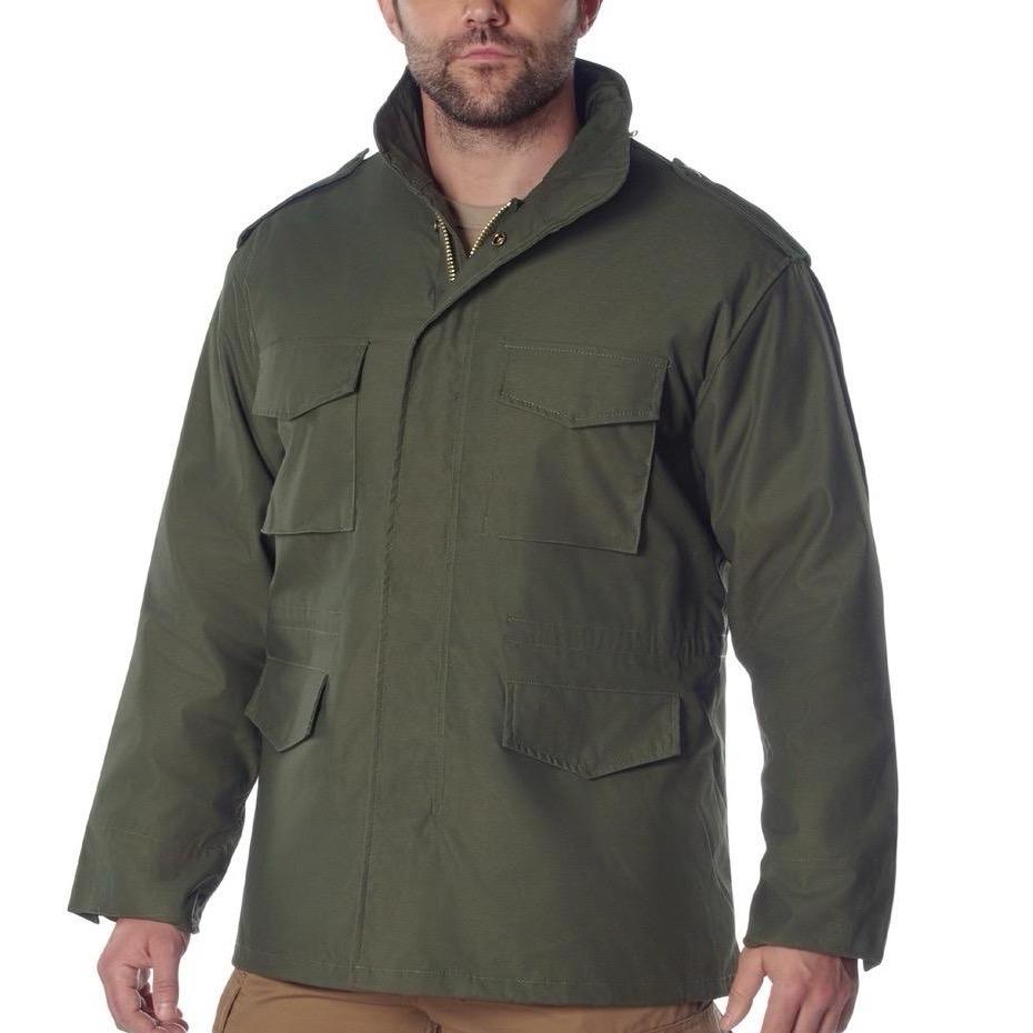- A tried-and-true classic, Rothco’s M-65 Field Jacket has been designed to conquer the cold. The tough, water repellent outer shell provides superior protection from wind, rain, snow & sleet. With a removable quilted button-in liner for added warmth, this all-season jacket is designed to government specifications and features a concealable drawstring hood stored in the collar and secured with a brass zipper closure. Get ready for any weather conditions with the classic Field Jacket!