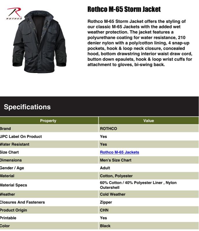 Rothco M-65 Storm Jacket Black - Menswear Rain Coat