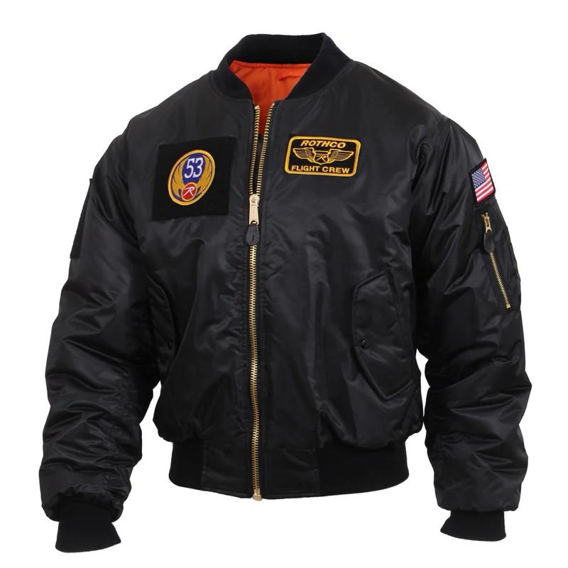 Rothco MA-1 Flight Jacket with Patches Black - Menswear Bomber Jackets, Women’s Unisex Coat