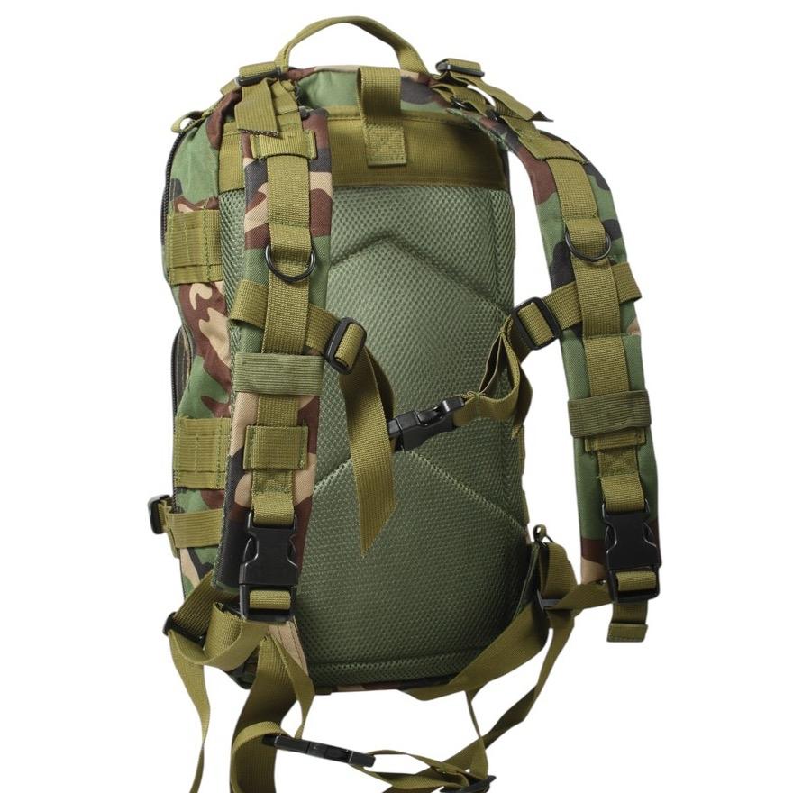 - Our Medium Transport Pack features a main compartment with a zippered pouch and mesh pocket and three additional zippered storage compartments, all equipped with large two-way zippers for full access to your tactical gear and outdoor supplies. The tactical backpack has a 25L capacity and measures 17 inches x 10 inches x 9 inches, providing ample storage space for EDC essentials. The military backpack is excellent for going to the range, trekking out into the great outdoors, or stocking up as a bug-out bag. Rugged Construction: Engineered with polypropylene webbing and 600D polyester, these medium transport packs are built tough, withstanding strenuous activities while in the field. In addition, the storage compartments feature heavy-duty zippers and water-repellent lining. Ready for Action: The survival bag has sternum and waist straps for weight distribution when carrying heavy loads. The compression straps provide additional adjustment when traveling. The get home bag features quick-release buckles for rapid and easy on/off.