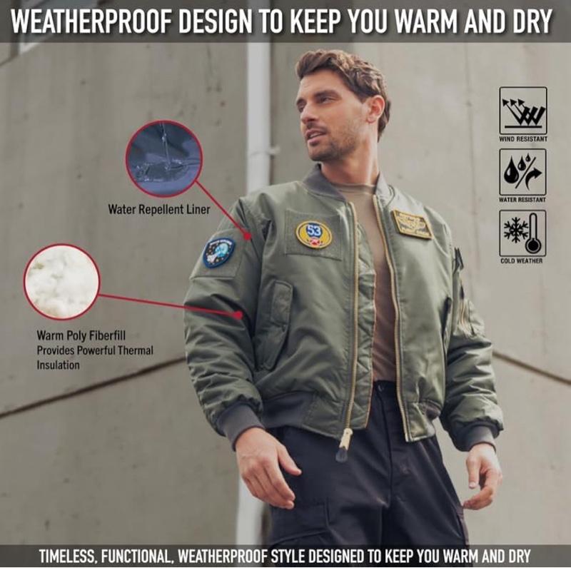 - Combat The Cold: Prepare For The Elements With Our Iconic MA-1 Flight Jacket, Equipped With Warm Poly Fiberfill For Exceptional Insulation, Keeping You Warm In Cold Conditions. The Bomber Jacket Features A Nylon Water-Repellent Outer Shell That Provides Protection From Light Rain And Snow.