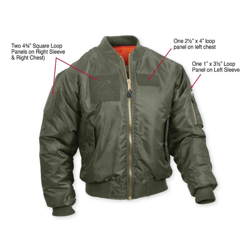 - Customize Your Look: This MA-1 Jacket Includes 4 Custom Loop Fields That Vary In Size, Accommodating Most Morale And Flag Patches. These Loop Fields Allow You To Personalize Your Bomber Style Jacket With Hook Patches Of Your Choice. It Also Comes With 5 Morale Patches With Hook Backs.