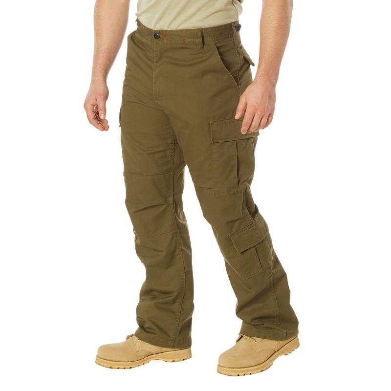 - Rothco’s Vintage Paratrooper Fatigues are made for superior wearability and long-lasting toughness. Crafted with a cotton/polyester blend, these fatigues are designed to withstand even the toughest of terrains. With two front slash pockets, two large button-down pleated bellow cargo pockets, two button down pleated bellow cargo leg pockets, and two button down back pockets, you'll have plenty of places to store your essentials while on the go.