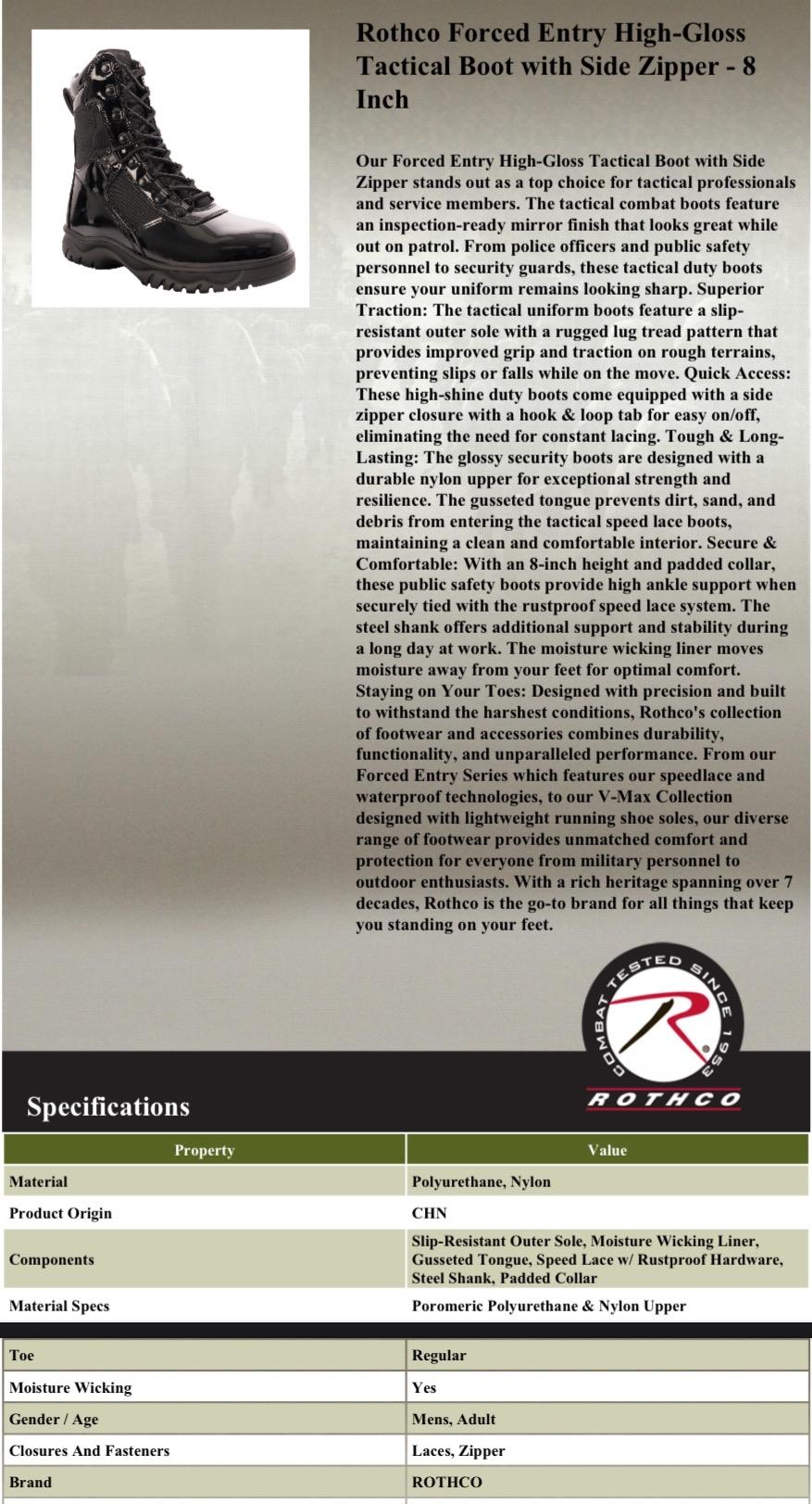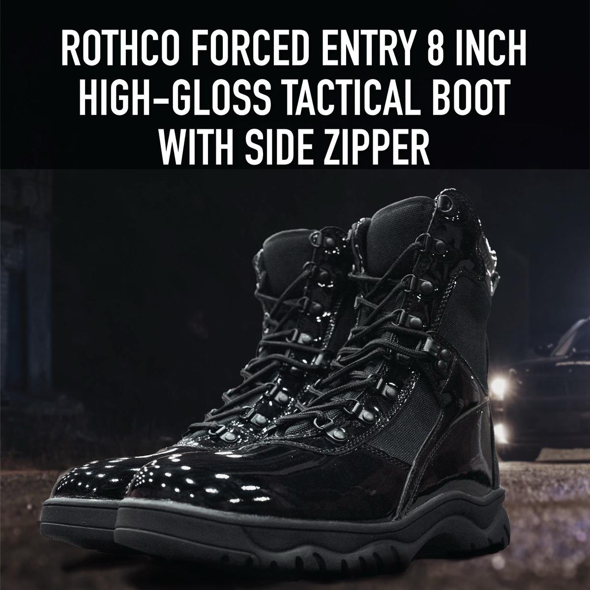 Rothco Men's Forced Entry High-Gloss Tactical Boots with Side Zipper - 8 Inch Comfort Boot Closed Tactical Boots Walking Shoes Fashion Workwear