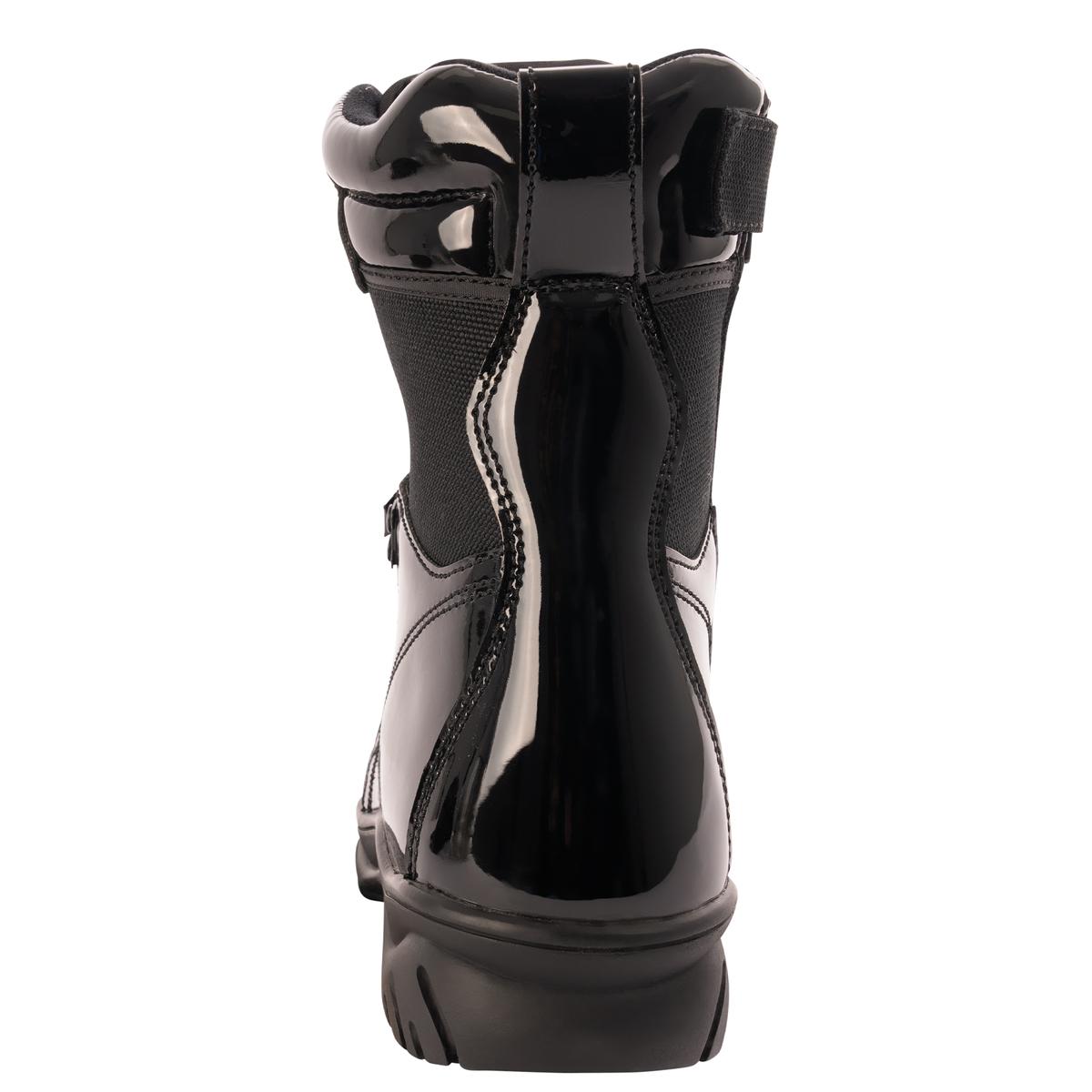 - Our Forced Entry High-Gloss Tactical Boot with Side Zipper stands out as a top choice for tactical professionals and service members. The tactical combat boots feature an inspection-ready mirror finish that looks great while out on patrol. From police officers and public safety personnel to security guards, these tactical duty boots ensure your uniform remains looking sharp.