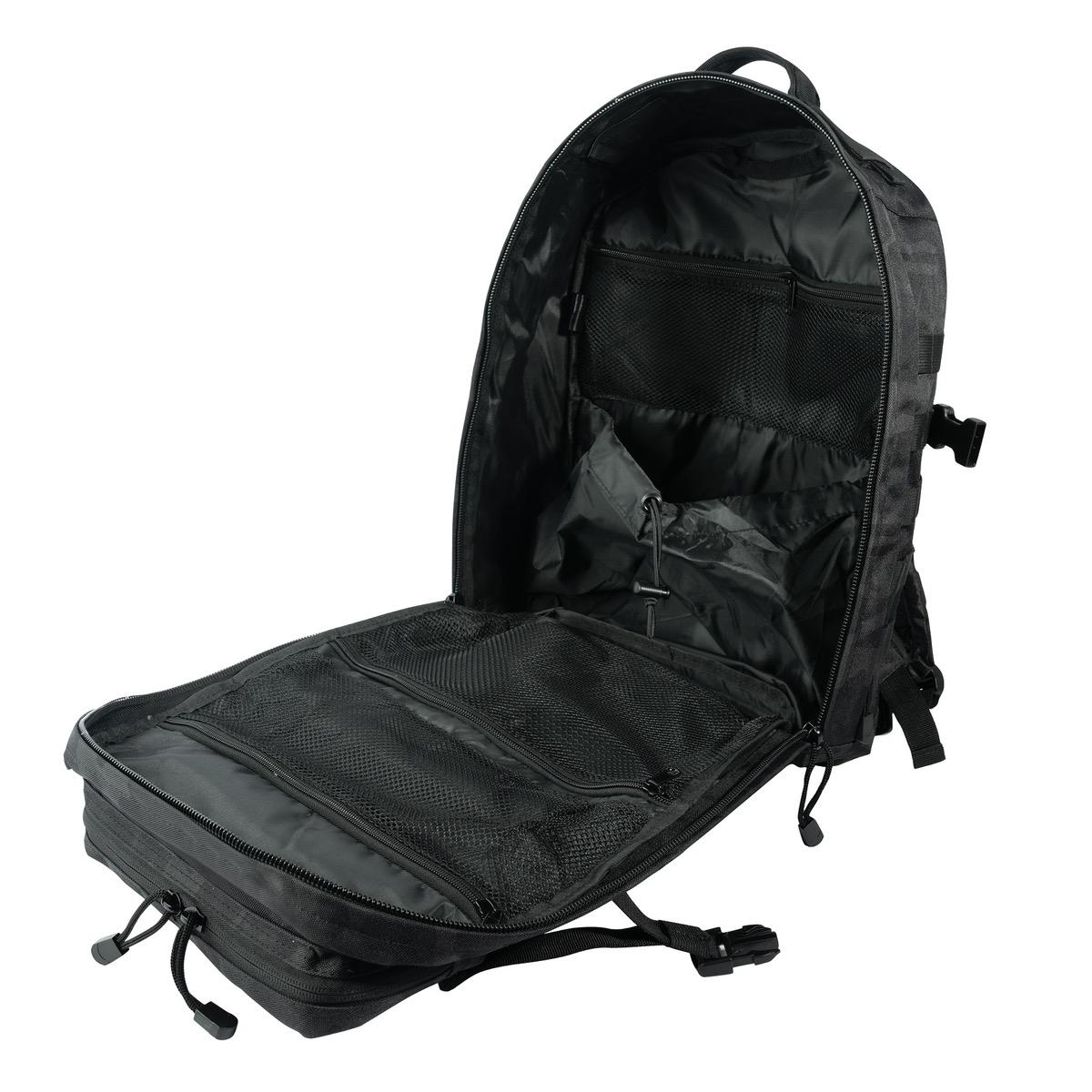 •Our Midnight Camo Fast Mover Tactical Backpack Features A Main Compartment With 3 Zippered Mesh Pockets And Drawstring Pouch, 2 Additional Zippered Storage Compartments, And 2 Concealed Side Pockets, All Equipped With Two-Way Zippers For Quick, Full Access To Your Tactical Gear And Outdoor Supplies. The Tactical Pack Has A 34L Capacity And Measures 9 Inch X 12 Inch X 19 Inch, Providing Ample Storage Space For EDC Essentials.
