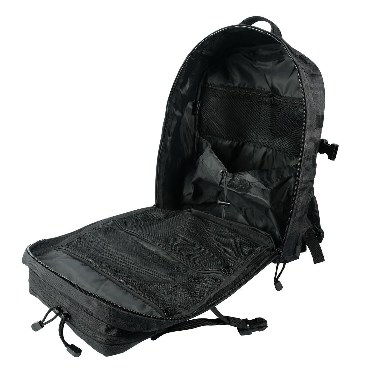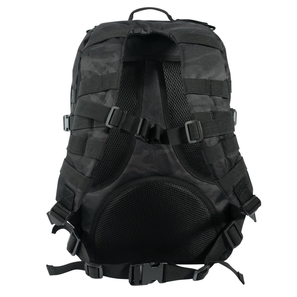 •Gear up with our Midnight Camo Fast Mover Tactical Backpack, the go-to solution for quick access to your tactical gear and outdoor supplies, featuring a main compartment with 3 zippered mesh pockets and drawstring pouch, 2 additional zippered storage compartments, and 2 concealed side pockets, all equipped with two-way zippers for full access. The tactical pack has a 34L capacity and measures 9 inch x 12 inch x 19 inch, providing ample storage space for EDC essentials, and is great for going to the range, trekking out into the wilderness, or stocking up as a bug out bag.