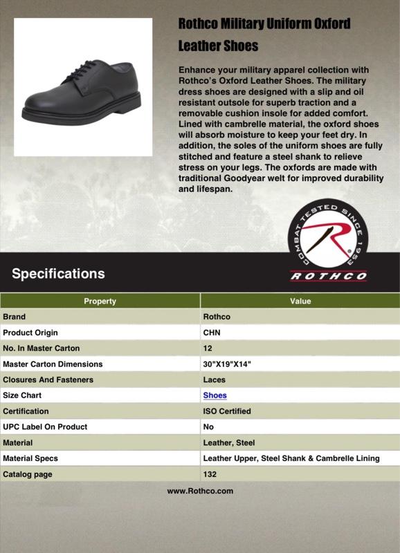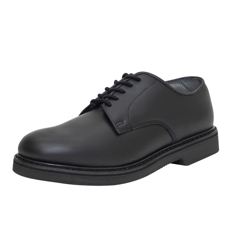 - Elevate your service apparel with Rothco’s Oxford Leather Shoes. Engineered for performance, these dress shoes feature a slip and oil-resistant outsole for exceptional traction. Enjoy all-day comfort with a removable cushion insole, while the Cambrelle lining absorbs moisture, keeping your feet dry. The fully stitched soles with a steel shank reduce leg stress, and the traditional Goodyear welt ensures durability. Step confidently in style and functionality with these premium oxfords.