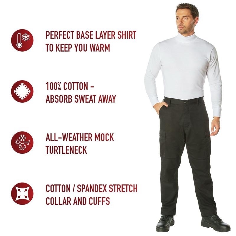 - Comfortable Fit: These all-weather mock turtlenecks feature cotton / spandex stretch fabric on the collar and cuffs for a comfortable fit around the neck and wrists, providing freedom of movement during demanding tasks.