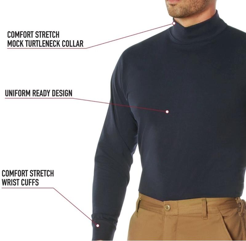 - Versatile Layering: The long sleeve turtleneck is great for wearing alone or layering under a uniform jacket during cold weather. From patrols to everyday wear, the mock turtleneck shirt is an essential layering piece that withstands strenuous demands while on duty and off.