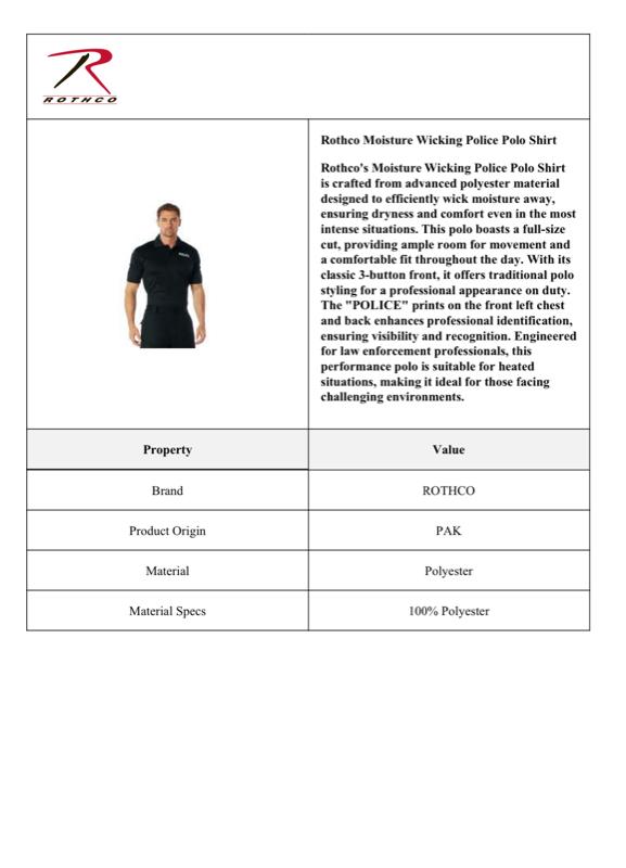 Rothco Moisture Wicking Police Polo Shirt - 100% Polyester, 3-Button Front, Professional Look, Durable Material, Ideal for The Professionals - Menswear, Fabric