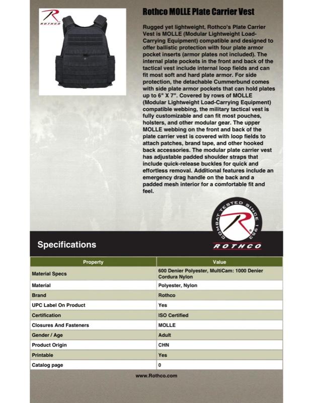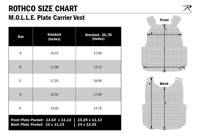 - Upgrade your tactical gear with Rothco's Plate Carrier Vest, designed to offer unparalleled protection and customization. Built for durability and versatility, this rugged MOLLE-compatible vest features multiple plate armor pockets and is perfect for both professional use and outdoor enthusiasts.