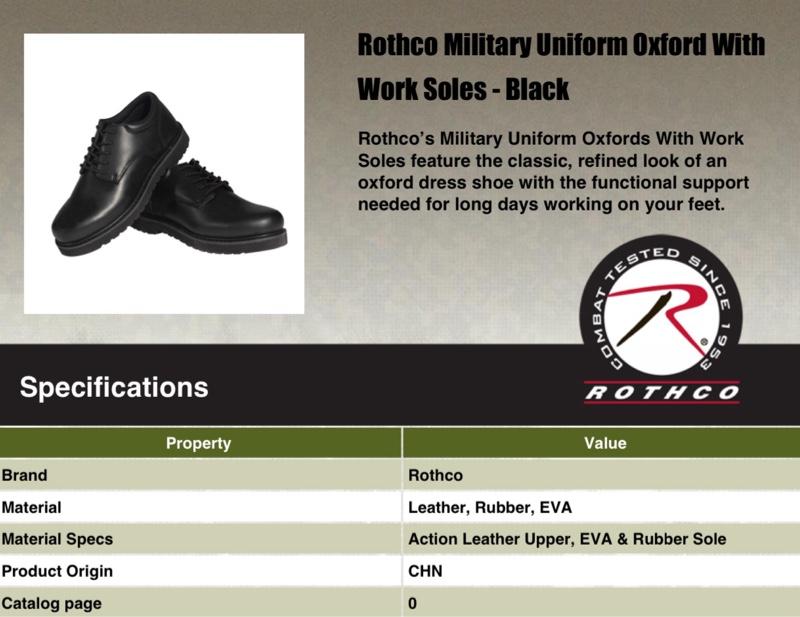 - Rothco’s Military Uniform Oxfords With Work Soles feature the classic, refined look of an oxford dress shoe with the functional support needed for long days working on your feet.