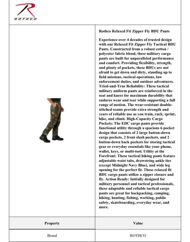 Rothco Relaxed Fit Zipper Fly Tactical BDU Pants