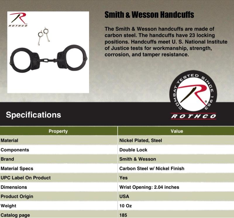 - Police Issue Carbon Steel With Nickle Finish Smith And Wesson Handcuffs