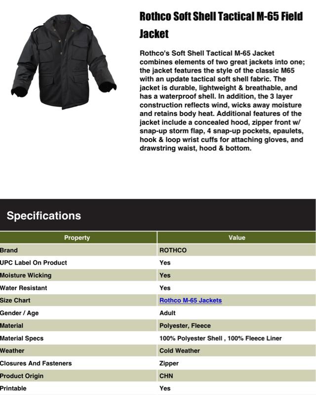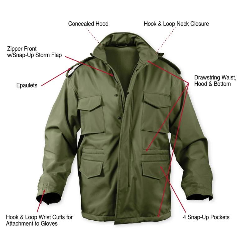 - As Part Of Rothco’s Rugged Soft Shell Outerwear Series, Our Soft Shell Tactical M-65 Field Jacket Shields You From Harsh Weather. The Soft Shell Waterproof 3-Layer Fabric System Deflects Wind, Retains Heat, And Releases Moisture. The High-Performance Fabric Will Help Protect And Keep You Comfortable While Braving The Elements.