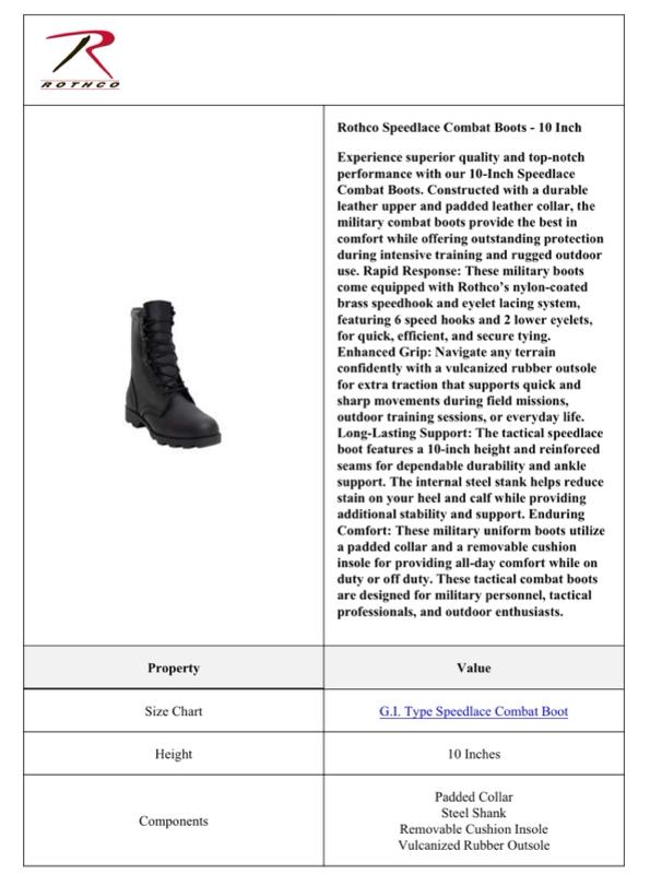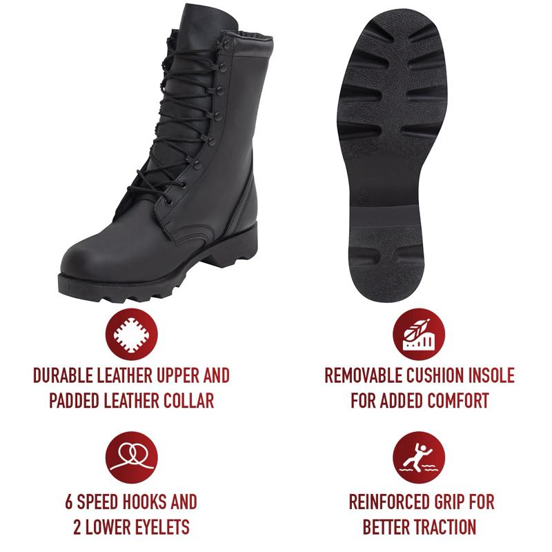 - These Military Boots Come Equipped With Rothco’s Nylon-Coated Brass Speedhook And Eyelet Lacing System, Featuring 6 Speed Hooks And 2 Lower Eyelets, For Quick, Efficient, And Secure Tying.