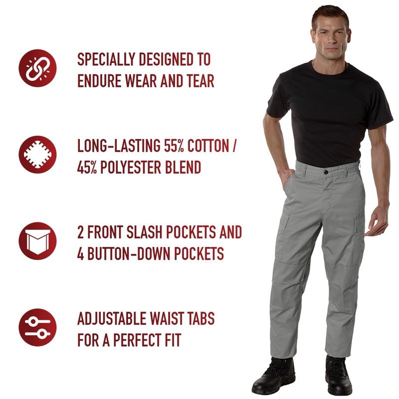 Rothco Tactical BDU Pants (Grey) Menswear Casual Pants, Unisex Cargo Trousers