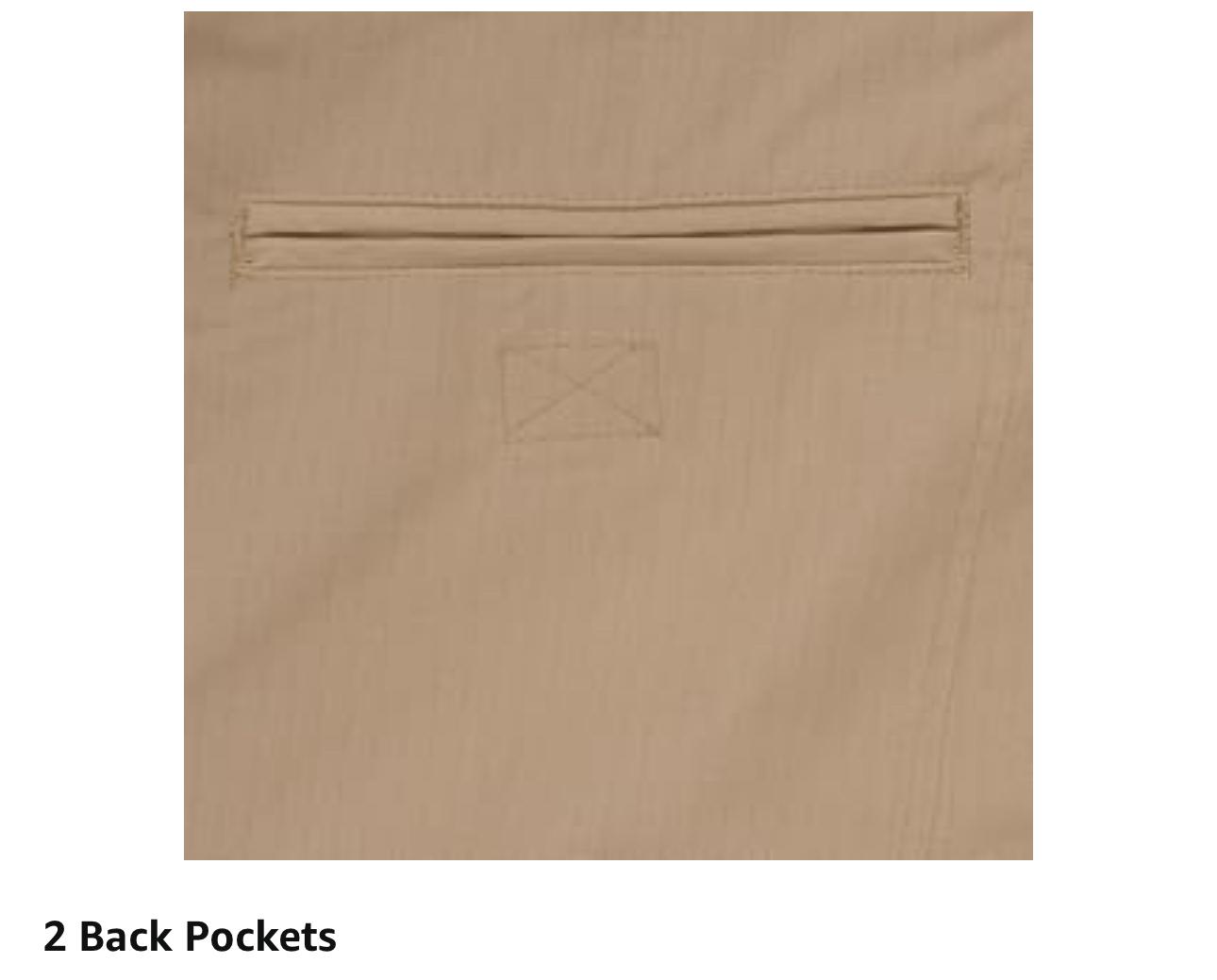 - Components: Comfort Slide Waistband, Reinforced Seat and Knees, Pleated Side Cargo Pockets, Stain & Water-Resistant Finish