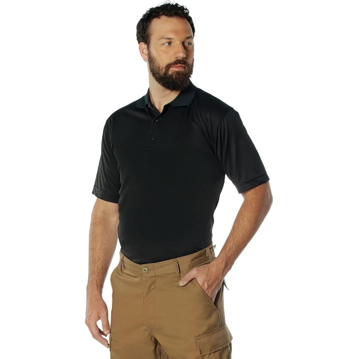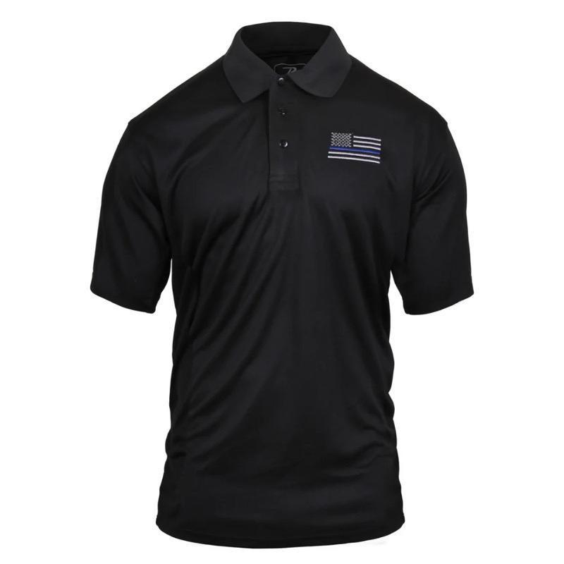 Rothco Thin Blue Line USA Flag Moisture Wicking Polo Shirt, Black 3-Button Collar, Lightweight and Breathable Fabric for Casual and On-Duty Wear - Classic Menswear