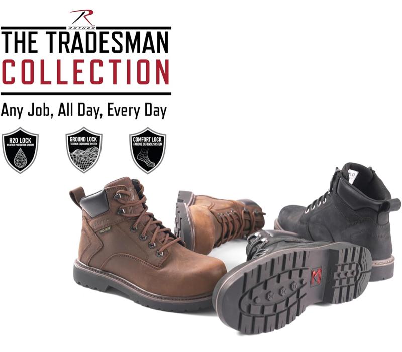 - As part of Rothco’s Frontline Series, the Tradesman Tactical Work Boot is engineered to keep you on your feet and moving while offering unbeatable comfort and durability at the jobsite. The 6 inch height and padded collar provides ankle support and protection while allowing flexibility during quick and rapid movements. The Tradesman is TAA compliant. Developed with Rothco’s Lock System, The Tradesman features a waterproof design that provides long-lasting comfort and enhanced traction.
