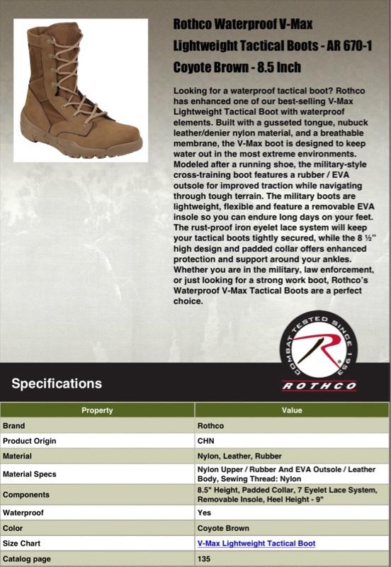 - Rothco's Waterproof V-Max Lightweight Tactical Boots are the ultimate solution for those seeking waterproof tactical footwear. Engineered with the toughest conditions in mind, these boots are designed to keep water out even in the most extreme environments. Crafted with a gusseted tongue, Nubuck leather, and denier nylon material, along with a breathable membrane, they offer exceptional waterproofing capabilities without compromising breathability.