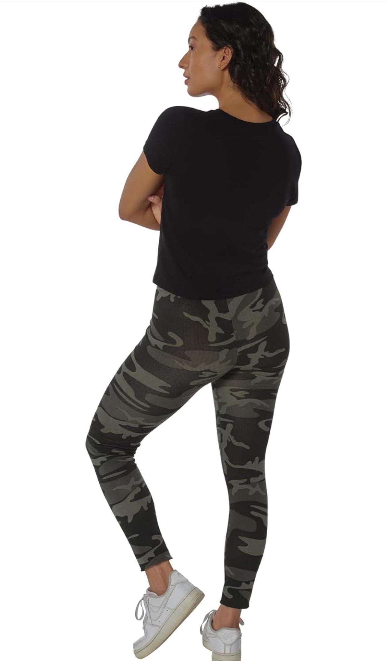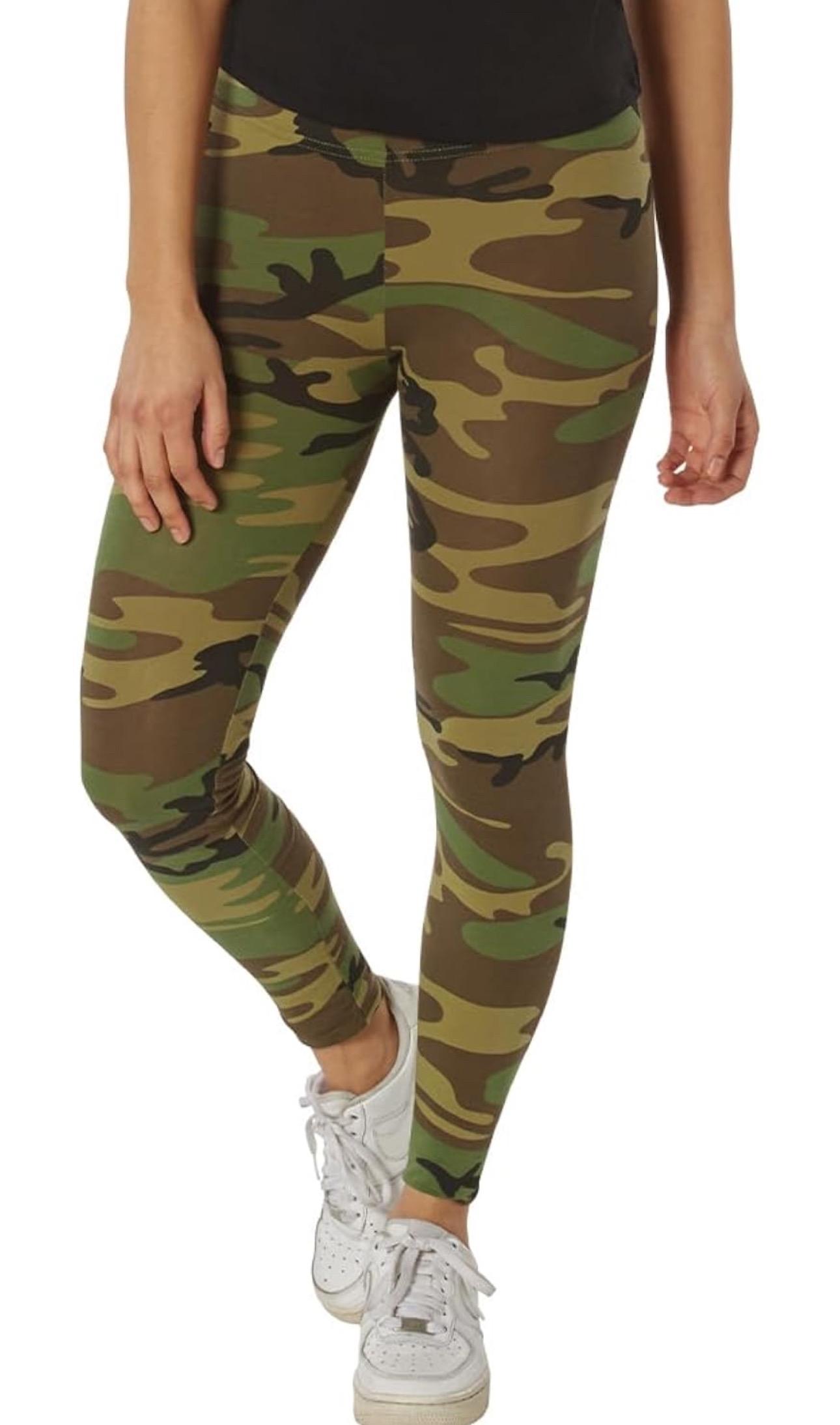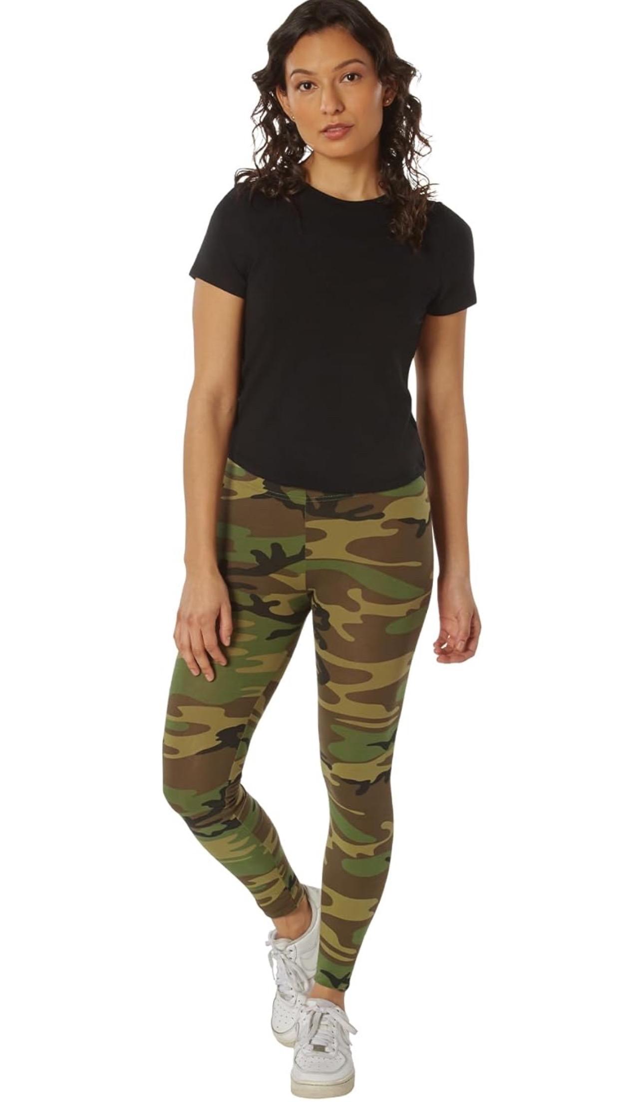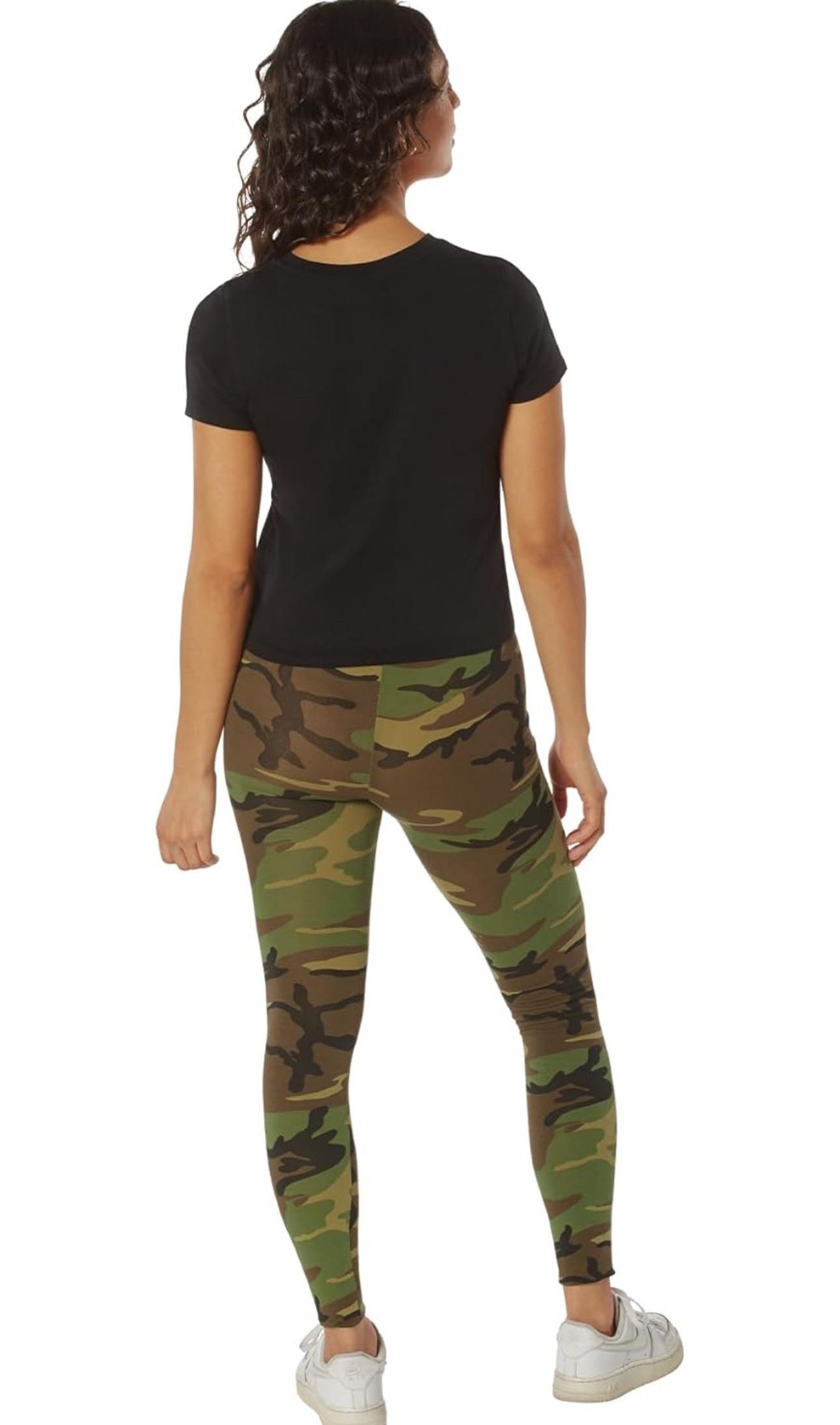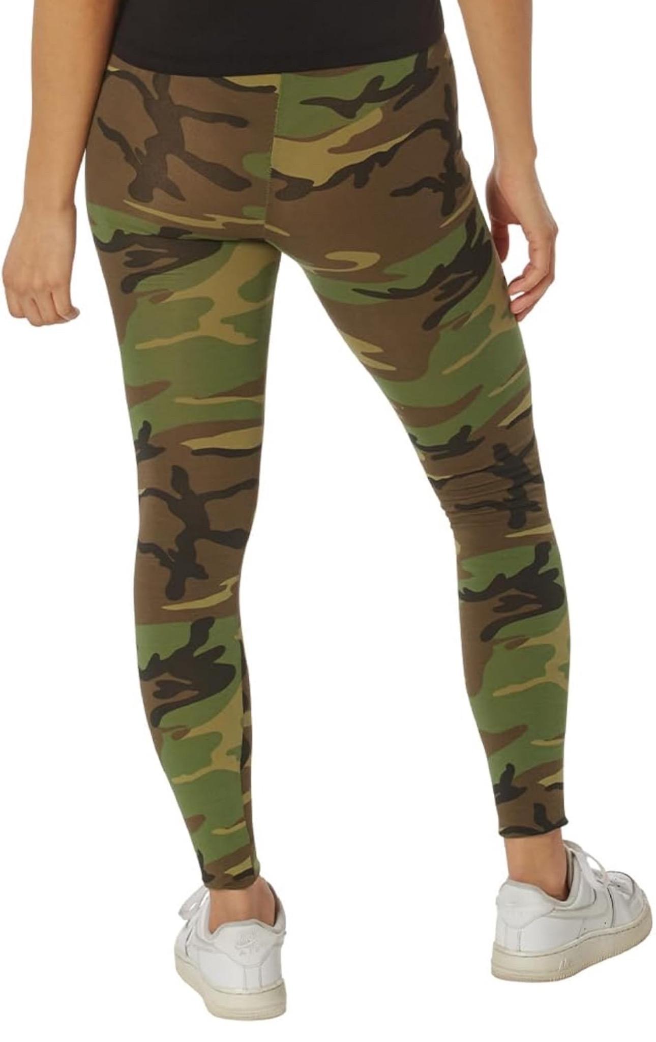 - Elevate your wardrobe with Rothco's Women's Camo Leggings, seamlessly blending classic camouflage patterns with contemporary women's fashion. Crafted from a blend of cotton and spandex, these leggings offer unparalleled comfort and flexibility. The form-fitting fabric stretches and shapes to your body, ensuring the perfect fit for any silhouette. Whether you're running errands or hitting the gym, these leggings provide both style and functionality.