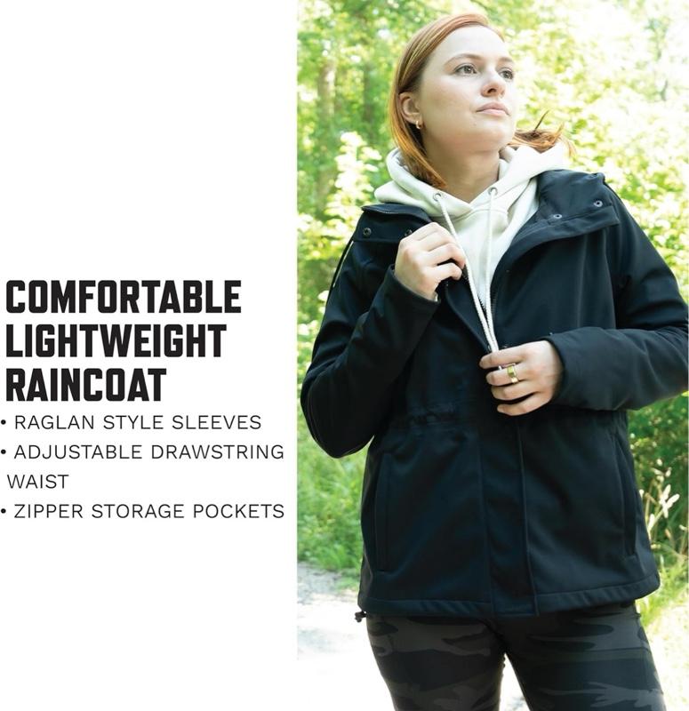 - All-Weather Protection: These Womens Raincoats Come Equipped With A Drawstring Hood, Full-Length Zipper With A Snap-Button Storm Placket, Zipper Storm Guard, Adjustable Hook & Loop Cuffs, And A Drawstring Bottom For Keeping Wind And Rain Out. The 2 Zippered Hand Pockets And 2 Interior Drop Pockets Provide Ample Storage Space For Essentials.