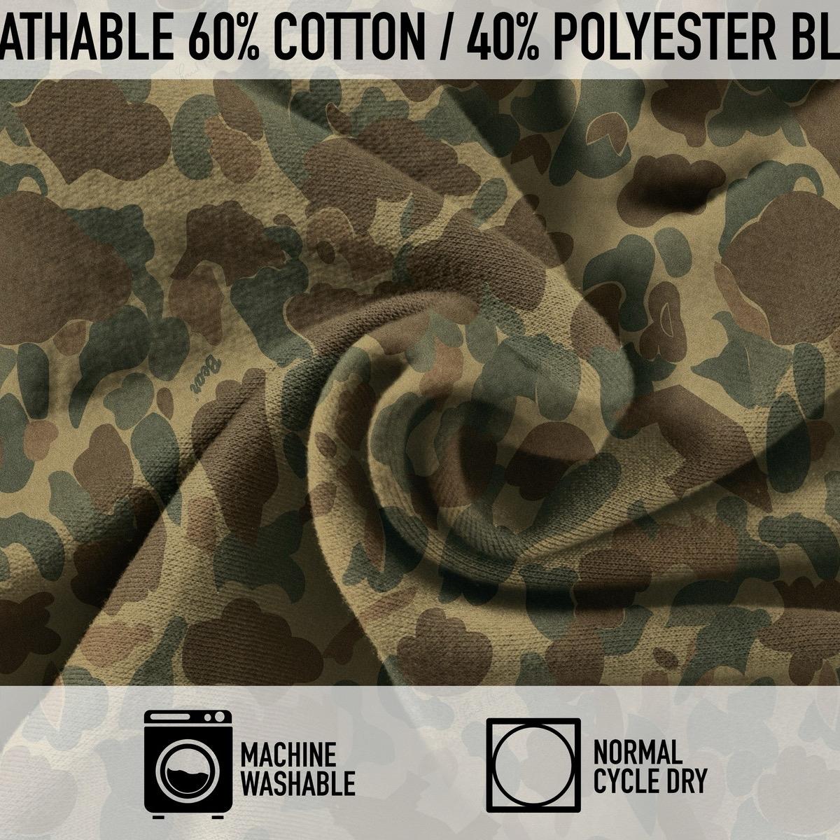 •In collaboration with Bear Archery, the revered Fred Bear camouflage pattern comes to life through Rothco’s legendary outdoor apparel and gear, including our rugged T-Shirts. Each item in the Fred Bear Camouflage collection has been crafted using the iconic Fred Bear camo pattern. As Strong as an Ox: Engineered with a breathable 60% cotton / 40% polyester blend, the Fred Bear Camo T-Shirt provides unmatched resiliency and easy-to-care-for maintenance. Whether you are on the hunt or at the range, this bowhunting t-shirt easily withstands rigorous outdoor use while remaining comfortable. The camouflage shirt is great for hunters, fishermen, and other outdoor enthusiasts.