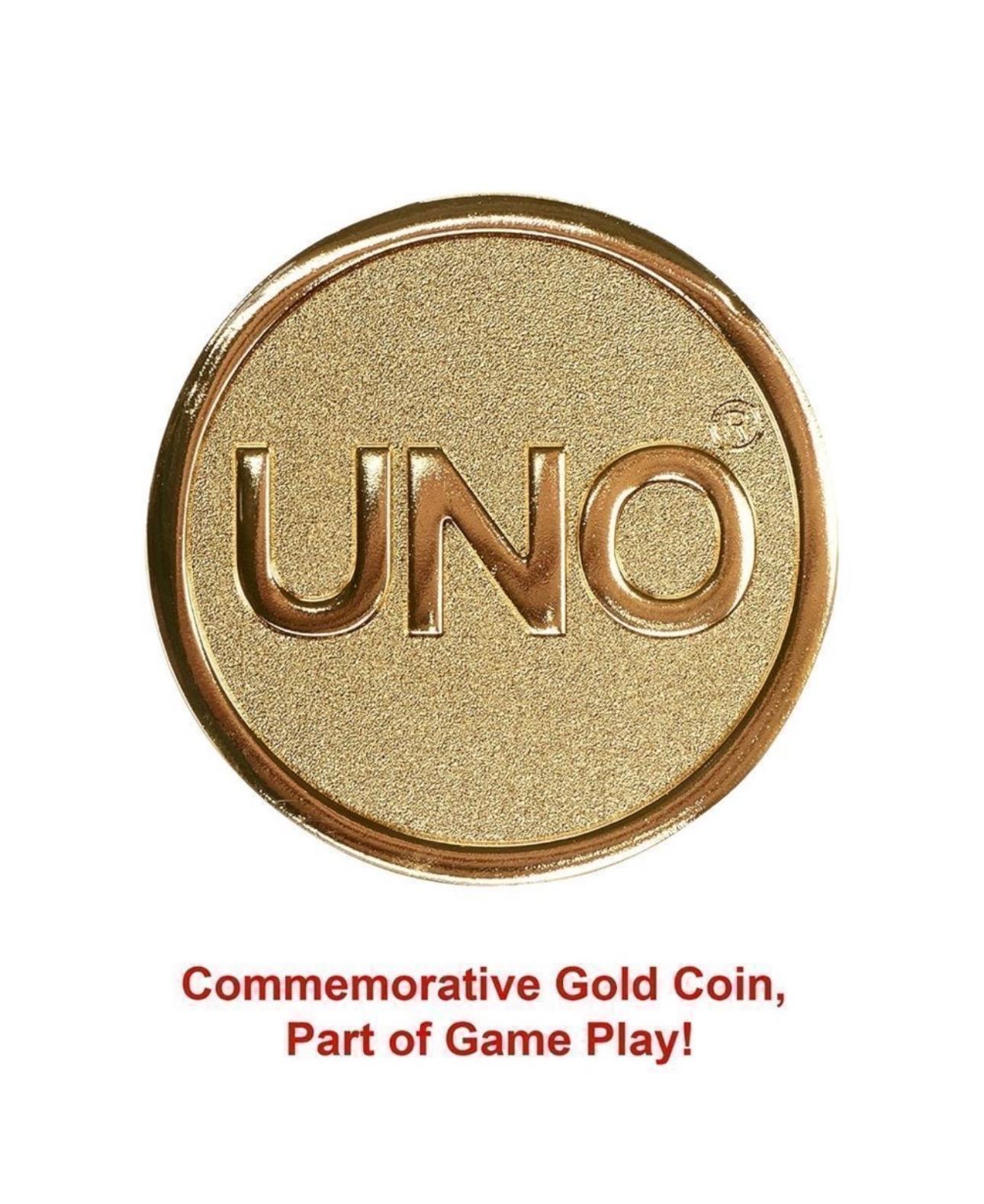 - The UNO "gold" coin not only adds uniqueness to this collectible edition of everyone's favorite card game but also is incorporated into game play via a special rule.